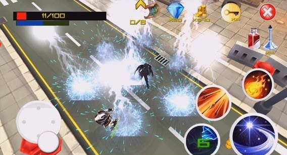 游戏中你将会操控一个觉醒的战斗机器人,在这个科幻的城市道路上去消灭不断袭来的机器人。