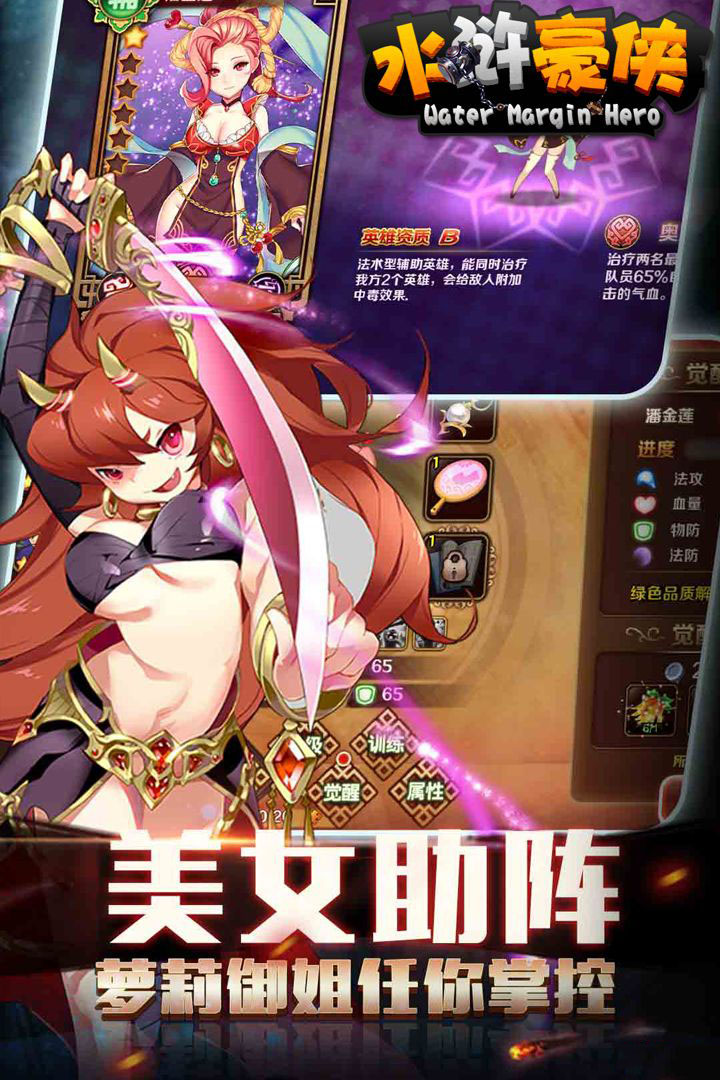 从梁山聚义、北上破辽,乃至征讨方腊,恢宏的史诗剧情如同演绎一幅宋代历史画卷。游戏中极具策略性的排兵布阵系统与角色扮演元素完美结合,摒弃了枯燥繁琐的造房子的内政系统,取而代之的是“以战养战”的全新模式,一切唾手可得!