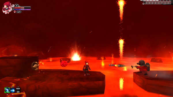主人公打倒敌人能获得经验然后升级,等级影响属性以及解锁技能使用权限。不过这个等级系统感觉有点鸡肋,玩easy难度下打完了序关和八大关卡其中的两关之后就已经升到了11级。属性的提升也不是那么明显。作为洛克人风格游戏的传统,打倒BOSS可以获得对应的武器。主人公的所有武器(包括初始的)都具备普通攻击(部分武器普攻可以蓄力)和三个消耗MP而且还有冷却时间的技能,并且在装备不同武器的时候也会影响属性伤害和承受属性伤害的抗性。
