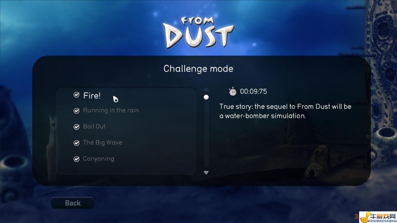 Canyoning:游戲一開始先按Q把鏡頭轉(zhuǎn)過來,然后迅速吸滿水,到頂上護符的地方等著,一旦子民拿到護符,馬上放水把他從山崖上沖下去(這悲催的命),然后到山崖底下把水吸干,讓子民能護送護符到圖騰,此關(guān)很搶時間,很搶時機,一不小心就滅團,所以,一定要在子民拿到護符的那一刻馬上放水把他沖下山崖,多走兩步就會悲劇的.......