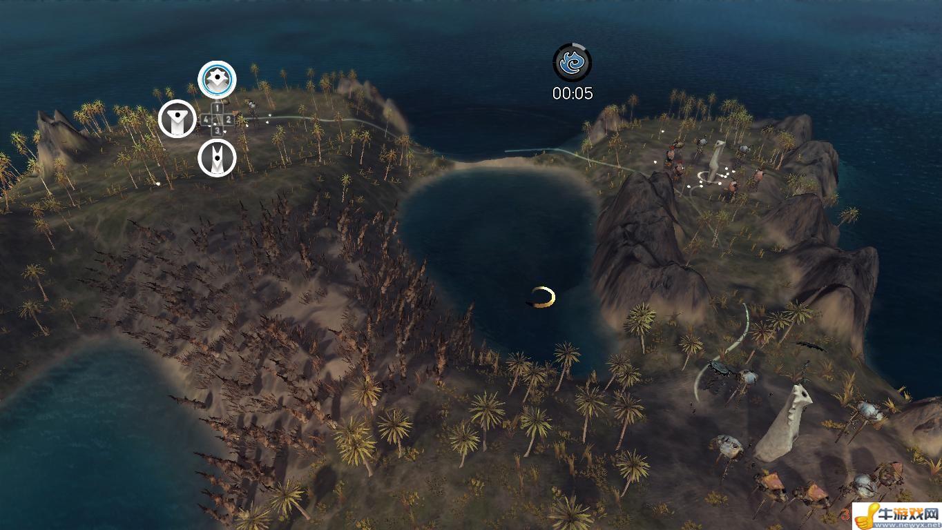 Running in the rain:這一關(guān)也不難,先去盡頭下達前往圖騰的命令,然后只需要在子民經(jīng)過溝渠的時候,將上游的水吸住(在出水口的地方吸水效果非常好),免得子民被沖入海中即可!只要有5個以上子民順利到達圖騰即可過關(guān),溝渠越往前水量越大,這個要注意!