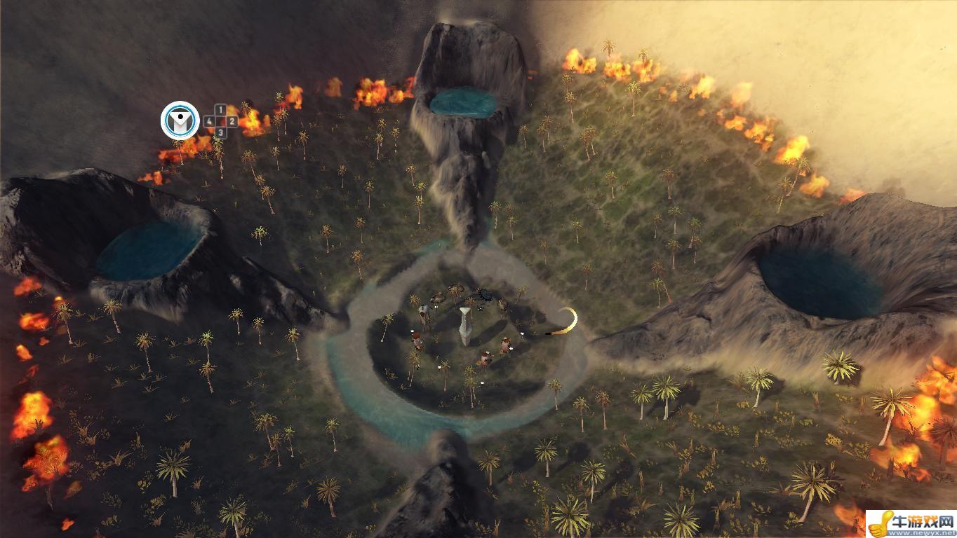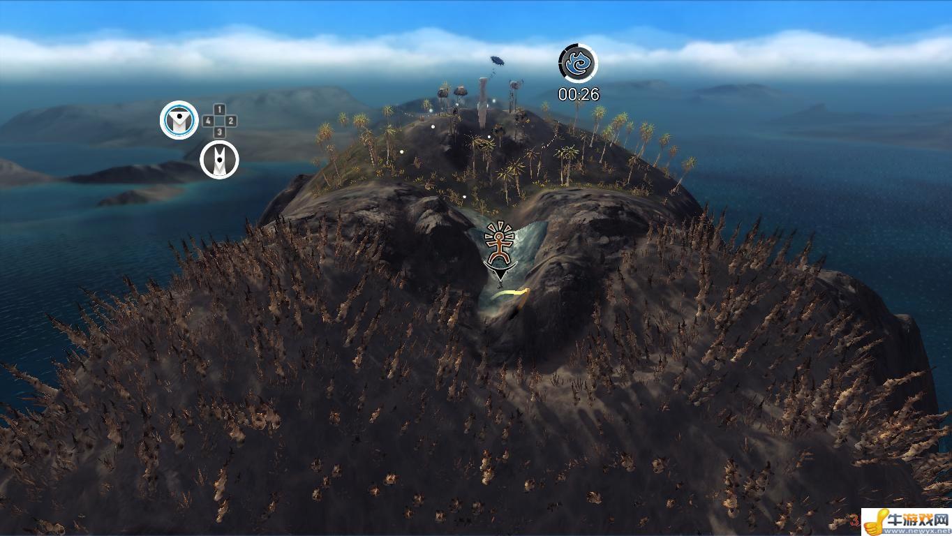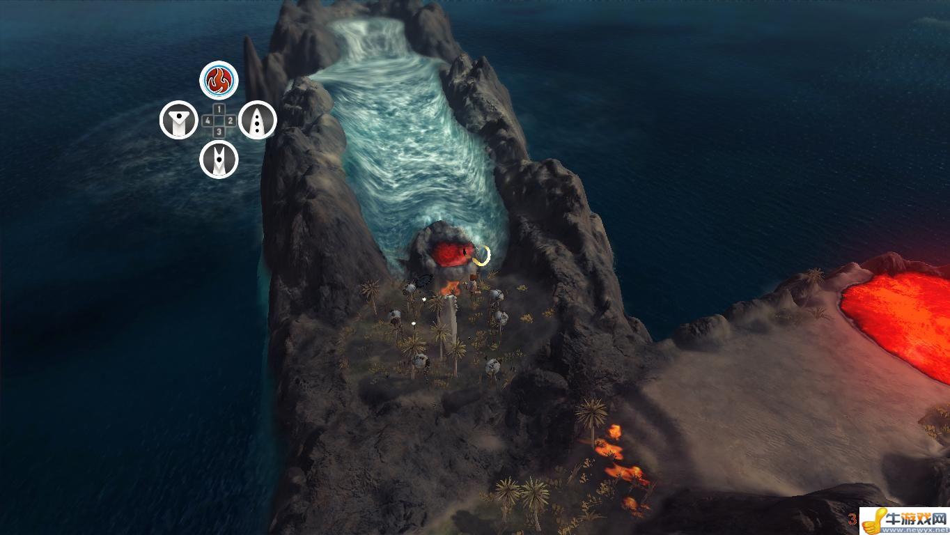 Waterfall:關(guān)卡一開始就去吸滿海水,然后鏡頭到山頂將拿著護符的子民用大水沖下來,此關(guān)非常搶時間,一般1-2次大水就能把子民沖到山腳下了,然后把山腳下的水吸干讓子民通過即可!