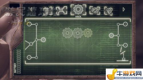 我們?cè)俅螄L試開(kāi)門(mén),然后進(jìn)入PDA界面,我們需要入侵系統(tǒng)把門(mén)打開(kāi)。入侵很簡(jiǎn)單,我們可以嘗試用前后左右鍵讓齒輪轉(zhuǎn)動(dòng),當(dāng)全部齒輪轉(zhuǎn)動(dòng)起來(lái),入侵就成功了。如果輸入錯(cuò)誤,那么我們需要從頭再來(lái)。這里我們輸入“d、a、w”打開(kāi)門(mén)。