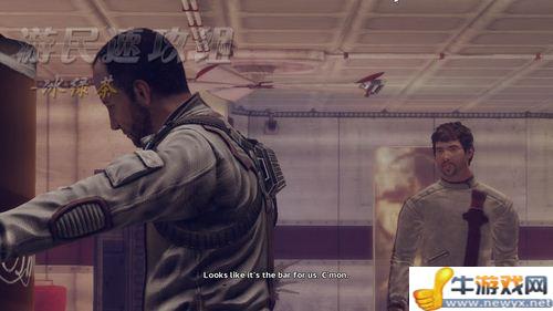 過(guò)一個(gè)門(mén)繼續(xù)向前走會(huì)觸發(fā)一段劇情,這里我們可以按f鍵跳過(guò),也可以默默看完。然后,我們要跟著這個(gè)男人去一個(gè)酒吧。