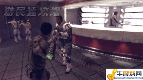 繼續(xù)前行,上了一個(gè)電梯以后,觸發(fā)劇情,然后會(huì)有兩個(gè)人向你射擊,這里我們需要跑向那個(gè)快關(guān)閉的門(mén)。干掉一個(gè)人后,我們要黑開(kāi)一個(gè)門(mén)。齒輪輸入“a、d、s、w、s、d、w”,進(jìn)去后繼續(xù)逃跑。來(lái)到一個(gè)小房間,觸發(fā)劇情。