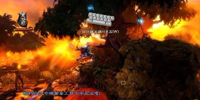 移動(dòng)和法師一樣,左鍵用劍攻擊,右鍵用盾牌防御,砍死一些植物后跳到這個(gè)南瓜上,