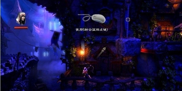 基本操作依然和前倆人一樣,左鍵是使用弓箭,到圖中這種地方按住左鍵瞄準(zhǔn)繩子,