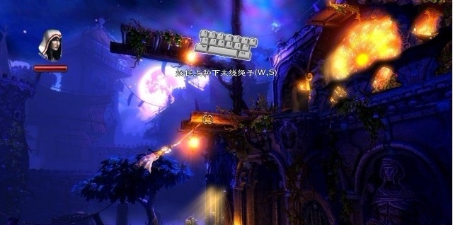 需要去高處的時候按W順著繩子爬上去,看到更高點(diǎn)的木板的時候再用繩索抓住,