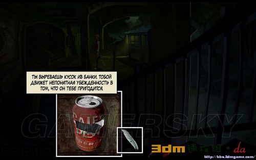 使用刀子和汽水罐組合,會獲得一塊鋁片(后邊的用來開鎖的道具)