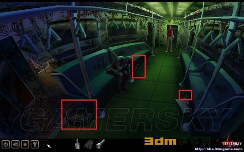 地鐵內(nèi)可以收集三個物品分別是上圖紅框位置