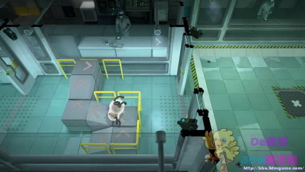 被一班神秘的科學(xué)家進行一系列的實驗,外星人無法進行跳躍,跟著箭頭所指去到對面門