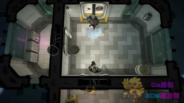 上圖的機關,要先破壞藍色的電源柜。去到下面引爆那個爆炸桶,出來一臺鐳射炮