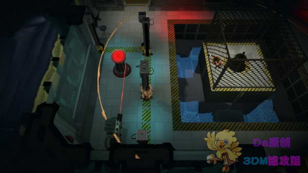 右邊的電源桶需要碰一下鐳射線,引爆電源!注意閃避