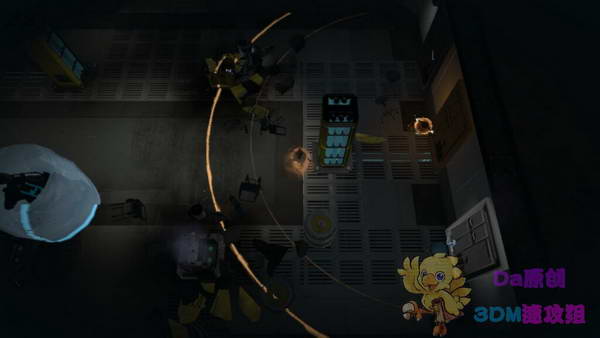 再次遇見第一關的BOSS,這里沒法逃??梢圆卦谕袄镏谱饕粋€分身引他破壞那些藍色的電源柜