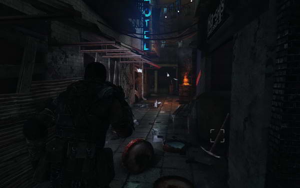 拿起需要的武器砸開鐵門鎖前進過場動畫后會遇到4名敵人(兩名敵人持槍)全數(shù)擊殺繼續(xù)前進.左側(cè)會有4名敵人(一名敵人持槍)注意拉開距離清理完畢繼續(xù)前進,會遇到三名敵人一名在樓上持槍擊殺掉繼續(xù)前進走到小巷慢動作之后往后退上方會扔下來油桶.進入左邊屋內(nèi)左轉(zhuǎn)進客廳前進到廚房門口里面會出來一名敵人擊殺進入廚房里面上樓梯繼續(xù)前進,上樓之后打開敵人關(guān)上的門把里面兩名敵人解決掉右轉(zhuǎn)上樓將對面樓上敵人解決并且把油桶全部點燃之后回頭在樓梯有電源射擊后下樓.出來往小巷走轉(zhuǎn)角處會出來拿霰彈槍的敵人后方也會出現(xiàn)一名敵人擊殺后前進前面會遇到兩名敵人(一名攜帶霰彈槍)解決繼續(xù)前進