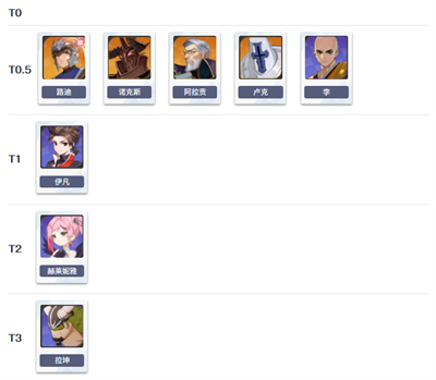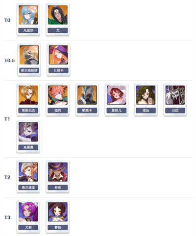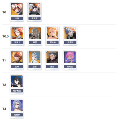 T1:包括機(jī)制差的傳說角色和機(jī)制出色的稀有角色,強(qiáng)度可觀。