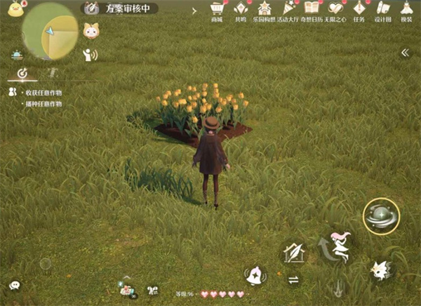 1、根據(jù)劇情指引來到指定地點(diǎn),會(huì)要求在黃圈范圍內(nèi)完成一次種植和收獲操作。