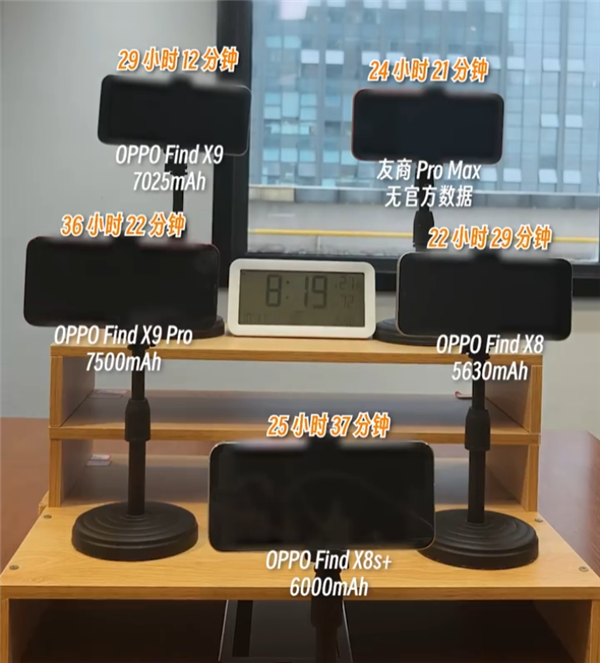 Find X9視頻播放總時長為29小時12分鐘,F(xiàn)ind X9 Pro視頻播放總時長達到了驚人的36小時22分鐘。