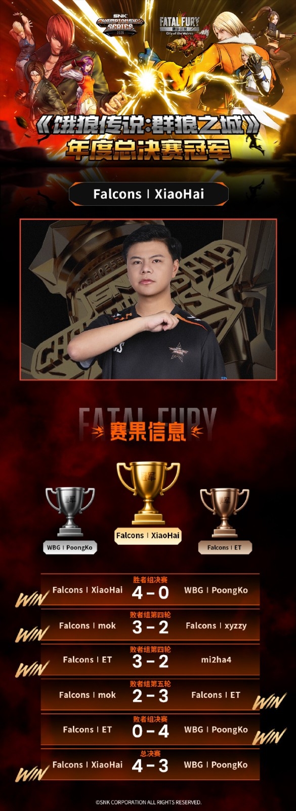 近日,SNK冠軍系列賽(SCS)2025《餓狼傳說:群狼之城》年度總決賽正式結束。